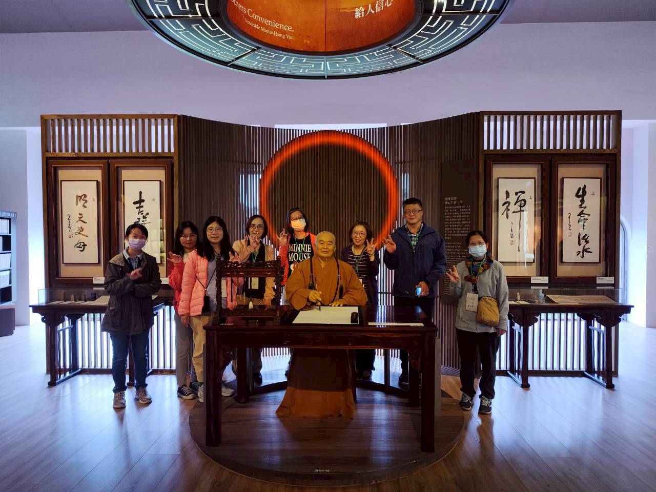 下午行程由佛光大學沈高溢組長帶領與會者進行圖書館及校園導覽,從圖書館出發至興學會館參觀開山堂與校史館,在知靜法師的解說中認識佛光山的創建脈絡與佛光大學的發展歷程。步行返程途中,來賓於懷恩館短暫休憩、享用咖啡,眺望龜山島與蘭陽平原的絕美景致,最終步行回到圖書館,為座談活動畫下溫馨圓滿的句點。