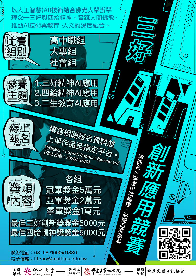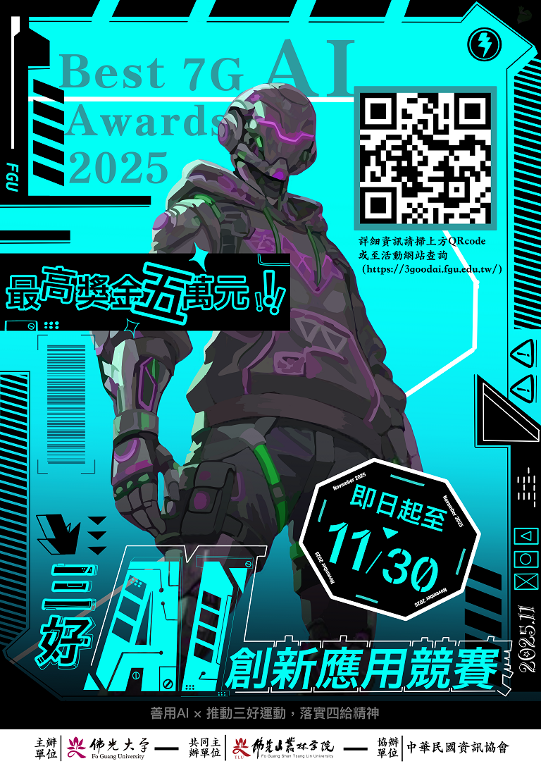 活動詳情與報名方式請至「三好AI創新應用競賽」https://3goodai.fgu.edu.tw/網頁查詢。